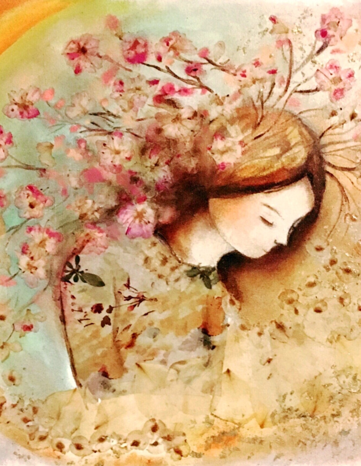 Under Natures Care was inspired by the soft pink flurry of blossoming cherry trees during the springtime. The original was created with many different types of collected found flora during the months of April and May here in the lovely Pacific Northwest.